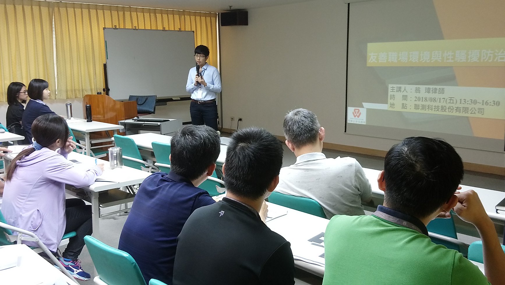 本所所長翁瑋律師日前受邀至聯測科技股份有限公司,講授「友善職場環境與性騷擾防治」課程,傳達性別平等觀念與性騷擾認知,並分享重要案例解析,現場同仁也主動提問,展現旺盛求知慾!